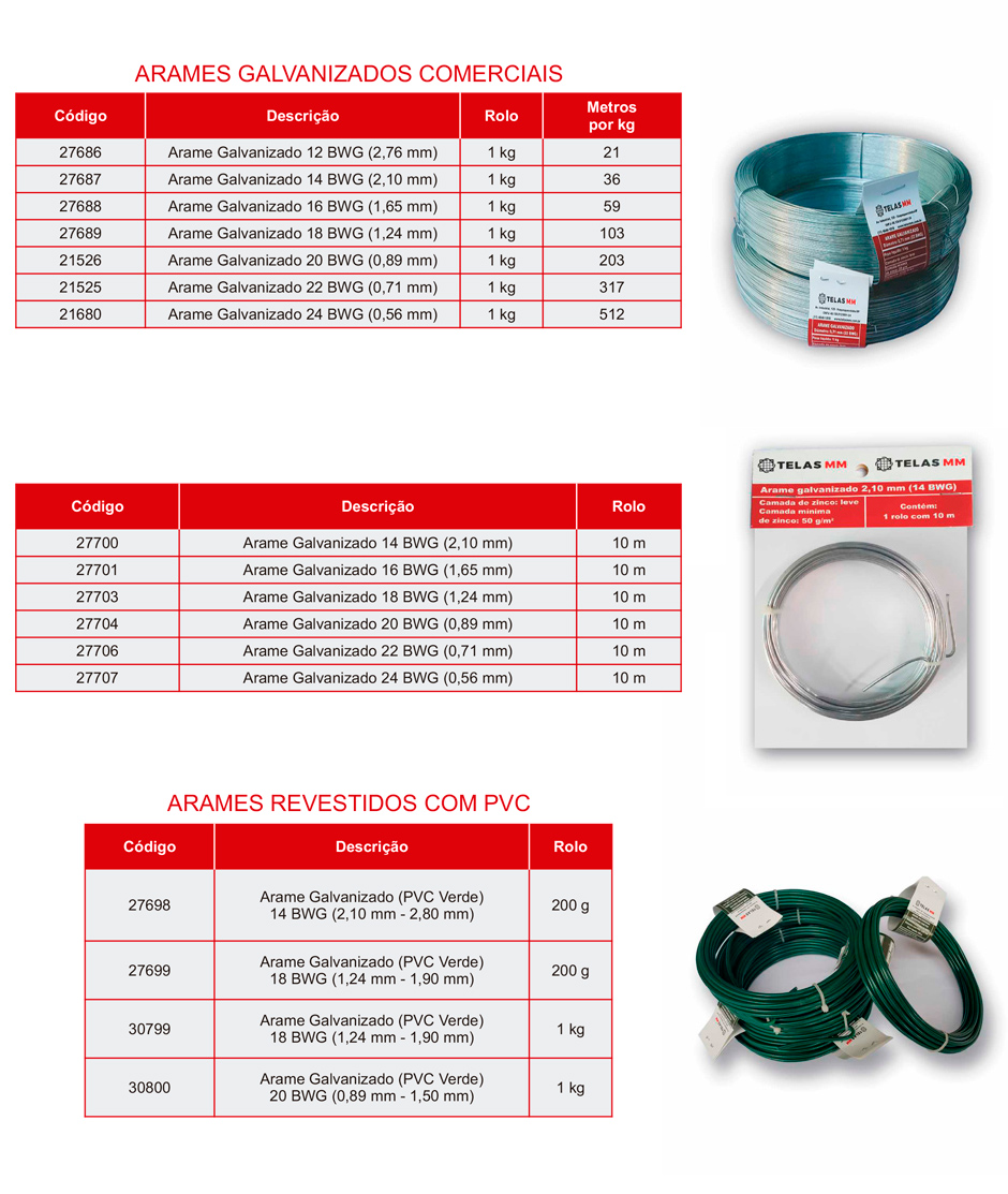 Com uma camada de zinco que garante maior durabilidade e resistência aos efeitos do tempo, os arames galvanizados podem ser aplicados em muitas áreas e os revestidos com PVC por não oxidarem têm maior durabilidade e são resistentes aos raios UV;