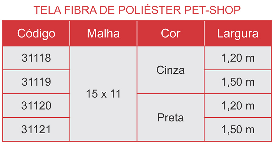 Mais conforto no ambiente destinado aos animais domésticos. Fabricadas com fios de fibra de poliéster e revestidas com PVC, essas telas não desfiam, não ressecam, são laváveis e resistentes. São de fácil instalação e reforçadas para utilizar em portas, portãozinho e cercados.